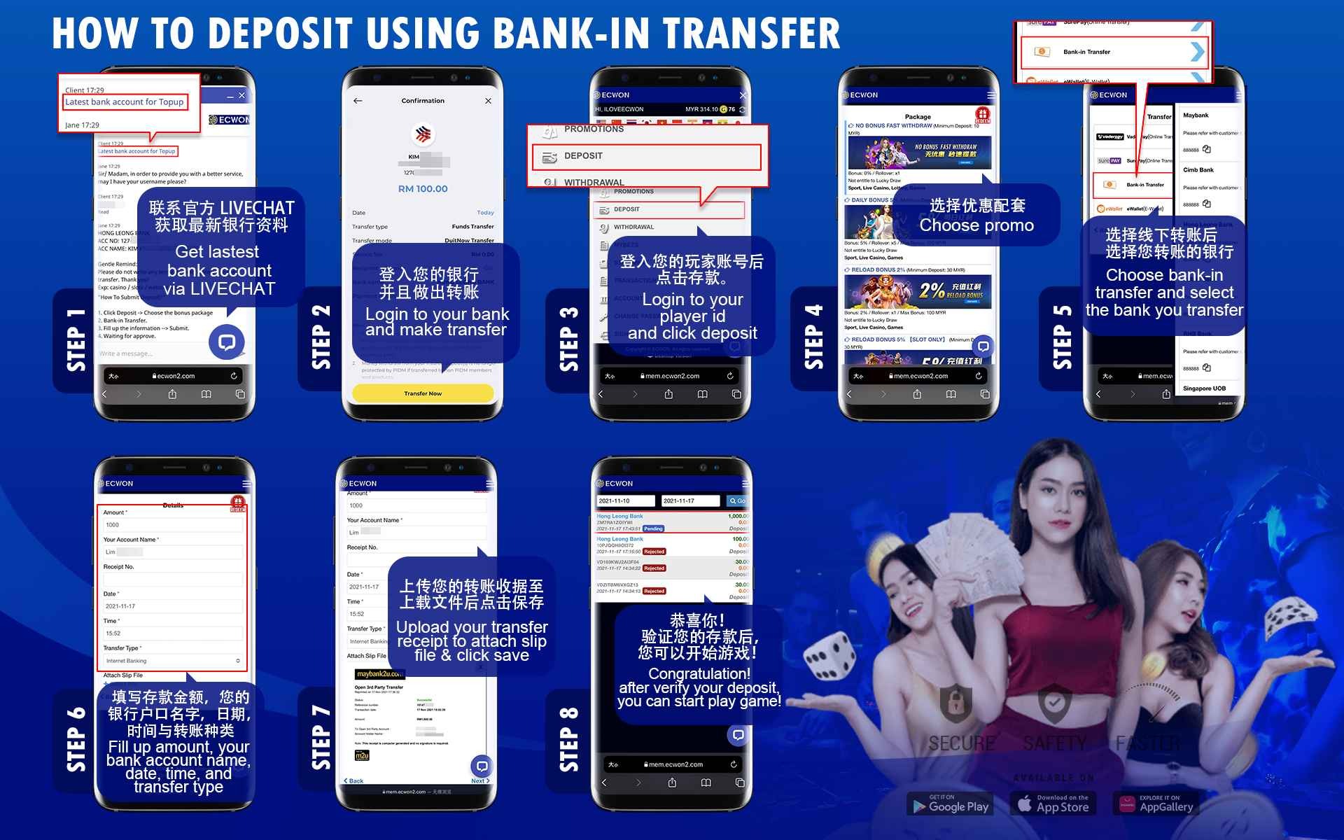 Please follow these steps to make a deposit :